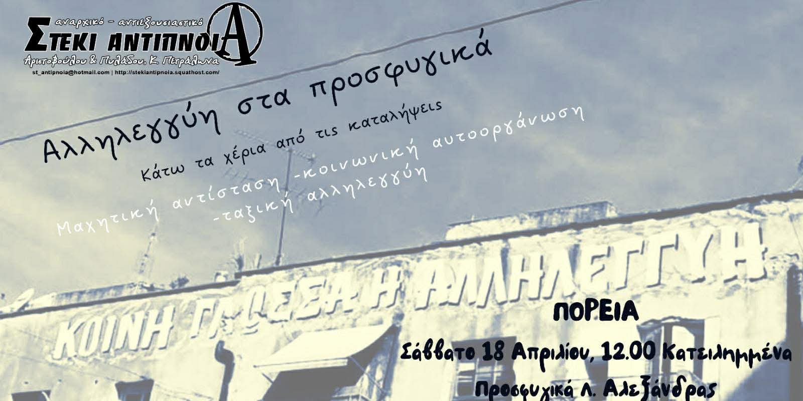 Σάββατο 18/4,12.00, Κατειλημμένα Προσφυγικά Λ. Αλεξάνδρας